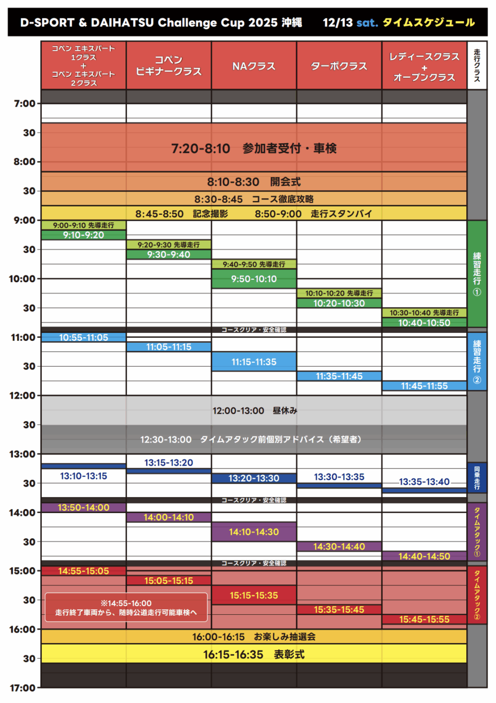 ・初心者/女性クラスあり — クルマ好きさんも、モータースポーツ初心者さんまで幅広い層の走行が見れます