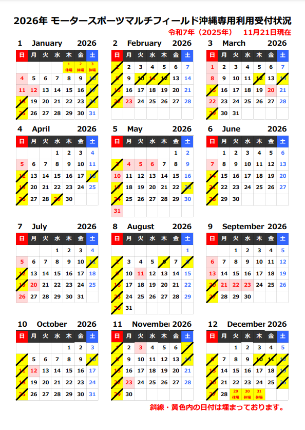 モータースポーツマルチフィールド沖縄から専用利用(貸切)募集のお知らせです! 1月4日(日)・1/11(日) 専用利用(貸切)をご希望の方は、施設までお問い合わせください。 ※予約は先着順ですので、ご希望の